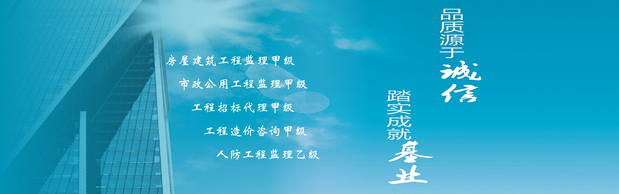 廈門基業衡信咨詢有限公司系具備房屋建筑工程監(jiān)理甲級、市政公用工程監(jiān)理甲級、工程造價咨詢甲級、工程招標代理甲級、人防工程監(jiān)理乙級等多項資質的專業化項目管理咨詢機構, 竭誠為業主提供項目建設可研咨詢、概算編制、政府采購、招標代理、建設監(jiān)理、造價咨詢及工程代建等各方面全過程咨詢服務。